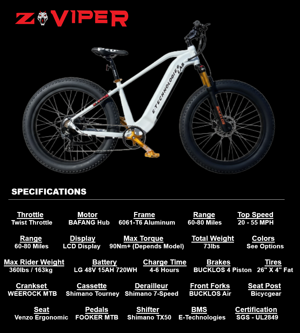 Z-VIPER FAT TIRE e-Bike Features: